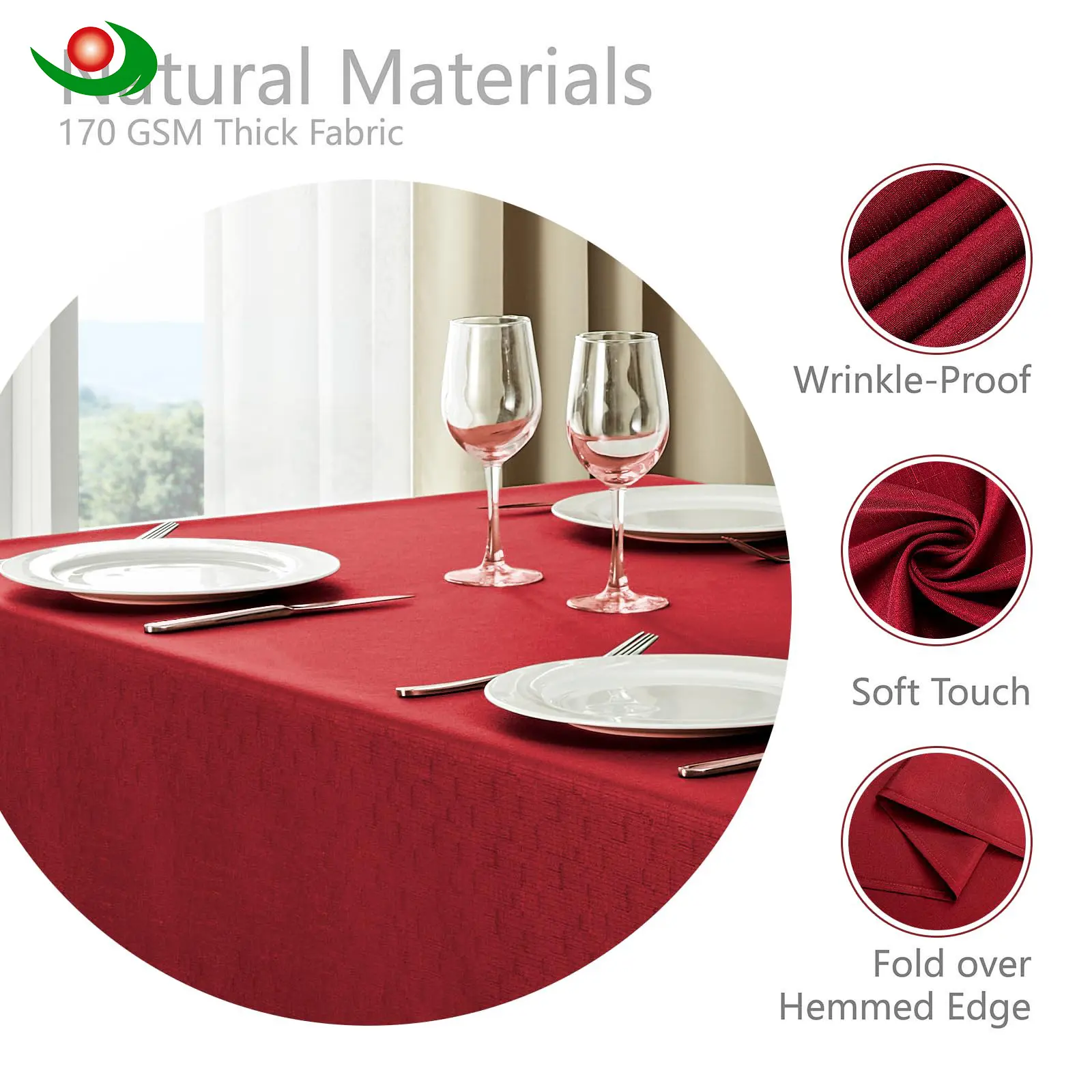 Cotton Tablecloth Dark Red - Jiayuan: Traditional Rectangle,Suitable for Various Occasions, Especially for Outdoor Summer Dinners and Parties